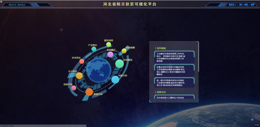 河北華燁冀科信息技術有限責任公司是河北省扶貧辦扶貧開發(fā)信息平臺唯一承建單位。從2016年著手河北省精準扶貧大數據應用開發(fā)以來,先后從精準扶貧、精準脫貧、精準防貧、小額信貸、考核評估及問題整改、信息公示、大數據可視化、移動終端對大數據在扶貧開發(fā)和脫貧攻堅領域的應用進行了產品研發(fā)。以大數據可視化動態(tài)模型式實時展現(xiàn)為特色,即時掌握貧困對象分布動態(tài),隨時可連線駐村干部手機端,進行全省實時指揮調度,多維展開數據應用及可視化展現(xiàn)。相關產品截圖: